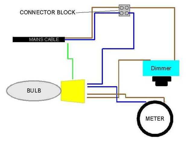 Entonces, siguiendo mi esquema, el atenuador (extraído de la placa frontal de plástico) está conectado con el alambre vivo con la salida del dimmer ir directamente a la portalámpara.