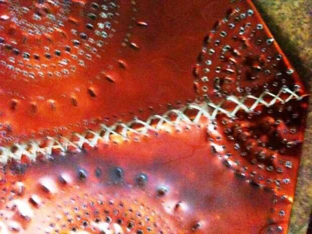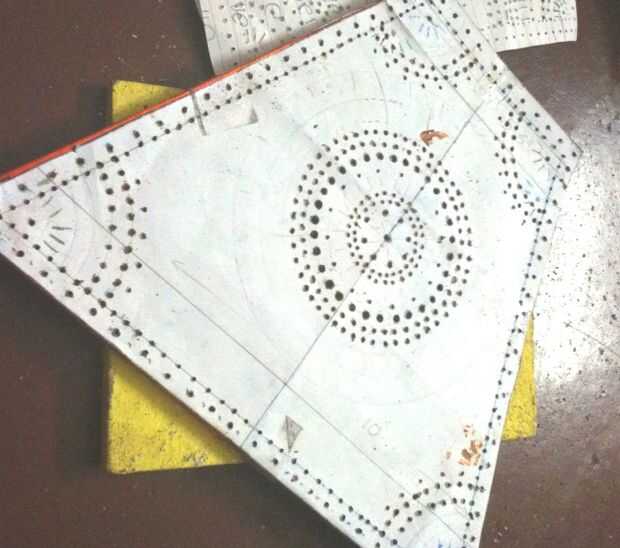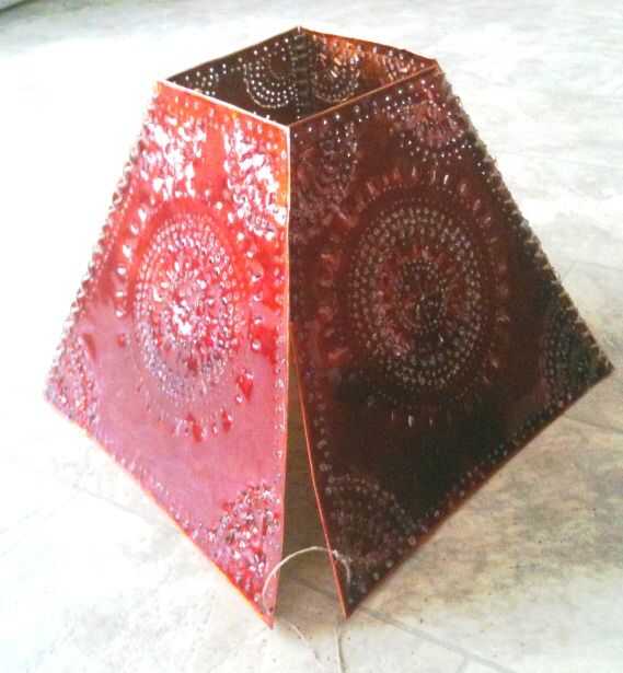 Mezclado las manchas con base de aceite con acabado de polietileno claro y manchadas las hojas... Traté de sombreado con caoba y teca. más tarde me lata había perforada mi diseño. Perforó agujeros en las esquinas como quería coser encima de.