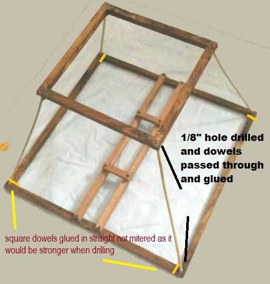 Una vez que sus marcos son pegados y secos... perforar la esquina en ángulo. Luego pasar 4 tacos igual (yo usé palillos de barbacoa espesa) y pegar. Utilizando un taco cuadrado de lugar 2 bloque a cada lado de una vez de lado del marco... y lo mismo para el otro lado. Consulte a los cuadros para obtener instrucciones detalladas ya que es más fácil de ver entonces tratando de explicar:-D.