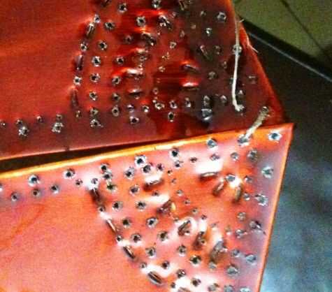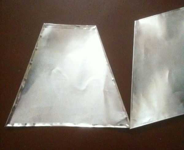 Hacer un bloque de su sombra y marque en la hoja de aluminio fina... como que me iba para un marco cuadrado que corte 4. Doblar los bordes por lo que no sería bordes afilados.