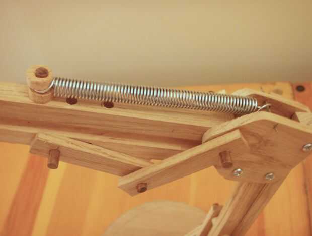 Como se mencionó anteriormente, he añadido un muelle a lo largo de la parte posterior del soporte del medio. El más pesado de la lámpara de la cortina y cuanto más las barras, la extensión más usted necesitará compensar el peso. Demasiada extensión y la lámpara saltará hacia arriba en lugar de quedarse cuando está bajado. Su OK si usted perforar unos pocos muchos, que conecta de qué madera son para!