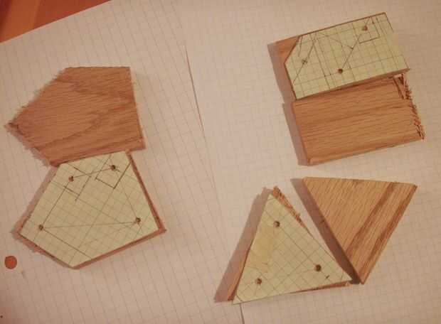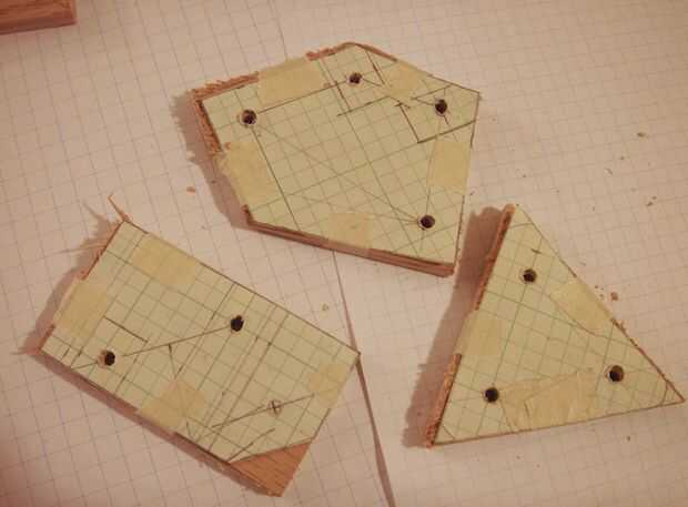 La abrazadera superior es sólo un triángulo equilátero. El tirante medio es un cuadrilátero irregular. El refuerzo inferior es solo un rectángulo con un borde redondeado. Tenga en cuenta que en la parte inferior una barra de apoyo se encuentra más bajo que el otro. Cualquier espacio entre las barras de soporte superior que será repetido con las llaves medio e inferior - por ejemplo, que una distancia de 1.5" entre el primer conjunto de bares se repetirá para el segundo conjunto.