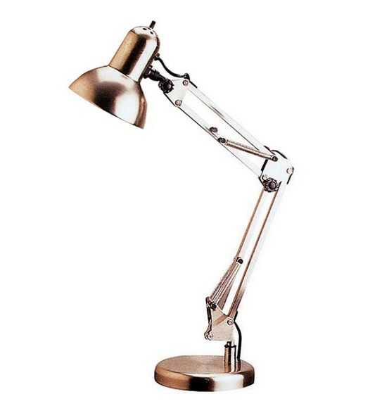 Había basado la lámpara de diseño de una lámpara de arquitecto metal similar a la arriba. El diseño de los frenillos es semi arbitraria - lo que es importante es que hay espacio suficiente para las barras de metal girar sin interferir uno con el otro.