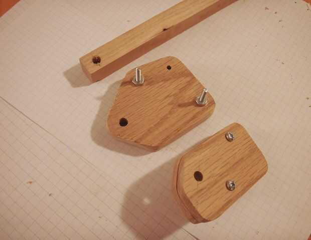 Las llaves medio e inferior requieren de 1/4" agujeros que colocará las bisagras que se tratarán más adelante. Para el medio soporte uno de la barra se agranda los agujeros, para el refuerzo de la parte inferior un nuevo agujero se perfora.