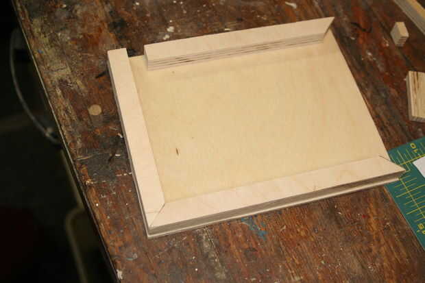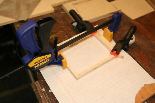 8. pegue el último 1/8" tablero y pinza que cierre. Presione el botón cada par de minutos hasta que el pegamento ha intentado, asegúrese de que el botón no conseguir pegado en lugar.