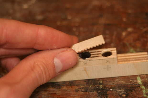 2. Coloque cada pieza de madera para comprobar el ajuste. Si necesita hacer ajustes, hacerlo hasta que el ajuste es apretado pero permite suficiente espacio para las piezas móviles.