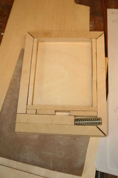 6. aquí viene la parte difícil: Encaje los imanes y las piezas móviles. Colocar el cajón en el cuadro y en el botón y la primavera. Si todo lo que necesita para moverse se siente lisa, entonces bien! usted tendrá un tiempo más fácil que hice. Si no, tiempo para empezar a lijar... OK ahora que todo está en su lugar y mover suavemente, marque el punto de cada imán. No te olvides que cuando el botón está en posición de descanso, los imanes deben ser (+) (-) que atraen. Cuando se presiona el botón hasta el fondo, debe ser (+) (+) para que la fuerza repelente empuja el cajón hacia arriba.