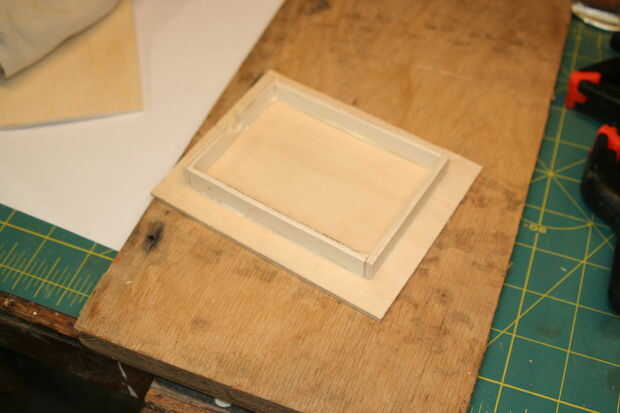 3. Pegue las tiras de 1/2" que conforman el marco a uno de los tableros de 1/8". Abrazadera y que este seco durante unos 20 minutos.