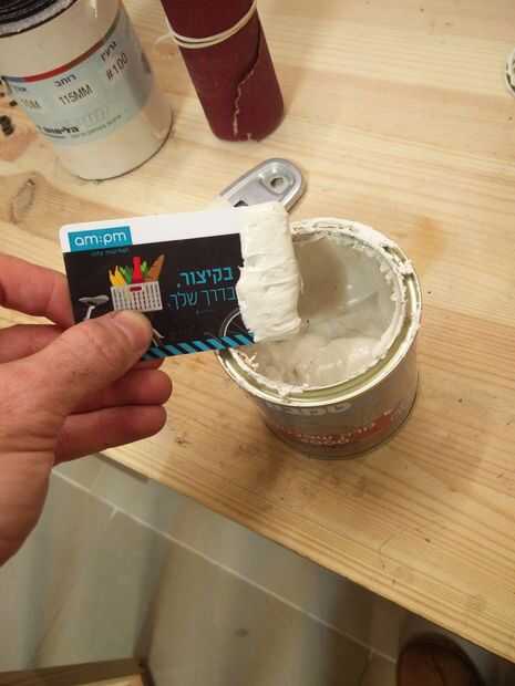Ahora tenemos que aplicar una capa de relleno de madera en todos los lugares donde se unen los polos.