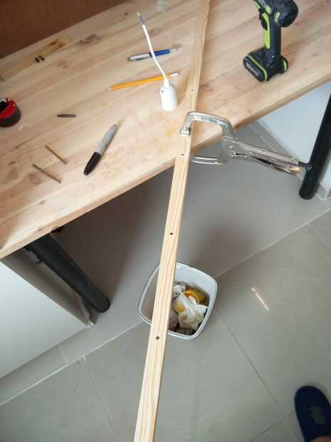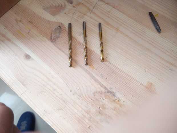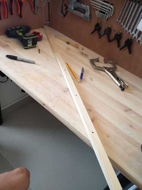Marque con un lápiz los agujeros deben ser perforados (tengo 5 Bombillas, así que divide la longitud del poste 6 - esa manera obtienes la misma longitud entre cada lámpara)