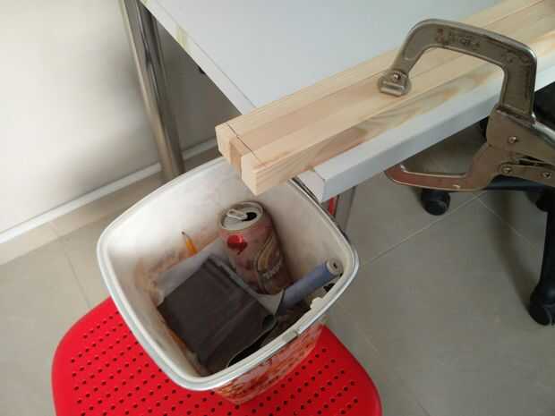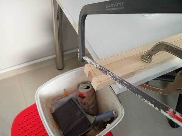 Mis barras de madera no eran la misma longitud - por lo que cogí en la mesa, que se alinea a un lado, y entonces yo cortar las sobras