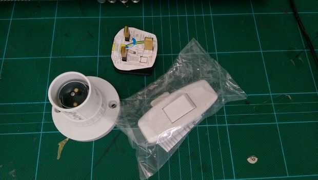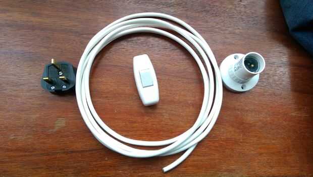 7, unos pedacitos eléctricas, un portalámparas de la lámpara, cable y enchufe (todo fácilmente cogidas para arriba en una ferretería)