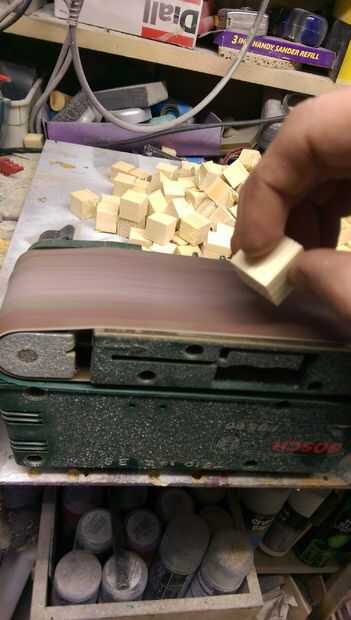 lijado de cada bloque y cada borde, esto tomó un tiempo, unas 4 horas, fue adormecedor y repetitivo de la mente y después de una hora, sus manos se daño, pero tomar descansos o repartidos, todo lo necesario para hacer el trabajo y trabajo hechas! 300 bloques idénticos casi listo para jugar con.