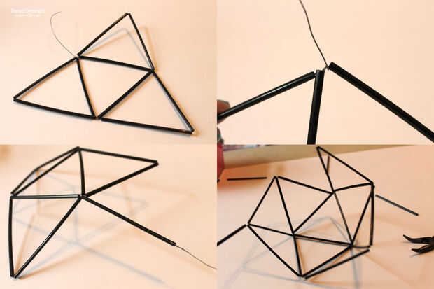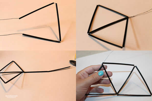 Luego que roscan en 3 secciones paja... trenzado de los alambres para hacer un triángulo,