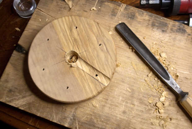 Eso es todo lo que necesita para asegurar el aparato, pero porque el acorde pasa hacia fuera a través de la parte inferior, un canal debe ser cortado en la base, lo suficientemente grande para el acorde pasar hacia el lado. Utilizar una gubia redonda y me corte el canal en la madera a mano.