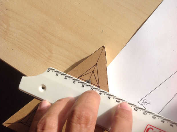 Cada pata se conectará en un ángulo del triángulo con un ángulo perfecto. Será otro pequeño triángulo en la parte superior para el diseño.