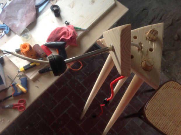 Ahora montar el triángulo superior con el portalámparas y fijar con tornillos.