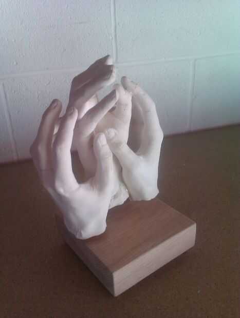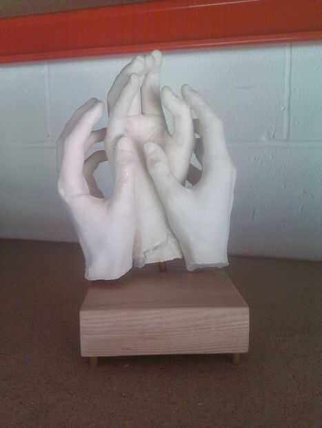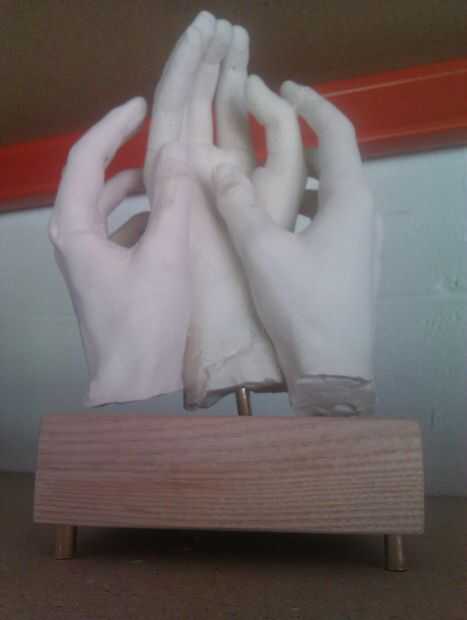 Con araldite un poco en el extremo de cada bit les golpee en los agujeros taladrados con un martillo. lo mismo en las manos ahora pegadas con la sección de latón de 50mm.