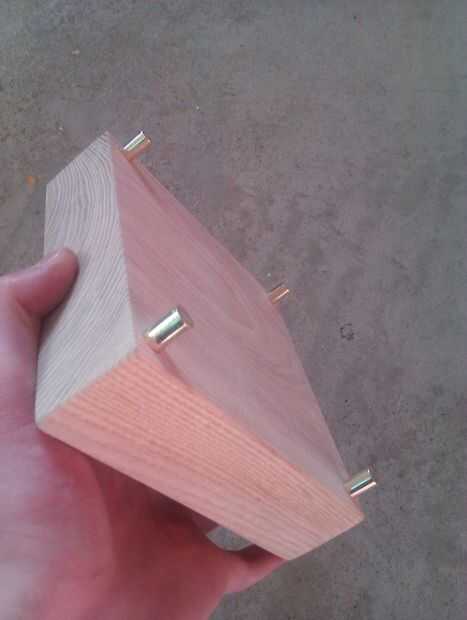 Los base 'pies' look impresionantes con roble. Para sacarlos tan brillante simple utilizar un pulimento que se llama "Brasso" también será limpiar la varilla. Usted tendrá que limpiar al final de este pero bueno hacerlo ahora también. Marque 4, secciones de 30mm y una sección de 50mm para el soporte de la mano de la varilla y cortarlos con una sierra para metales Júnior. Esto dejará un borde cortado en la barra así que limarlo uso de archivos diferentes, mayores a los grados más pequeños.