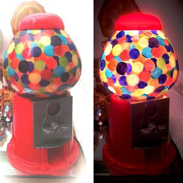 Ahora tengo una super cool lámpara y una máquina expendedora de la bola (todavía funciona porque el engranaje interno no ha sido tocado: D)