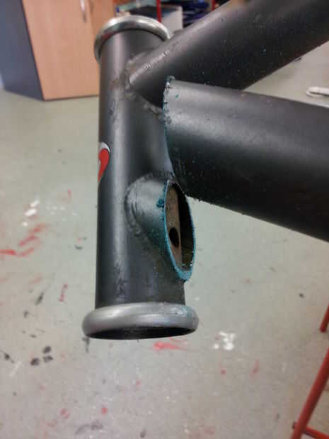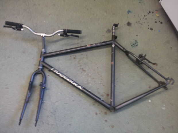Primero de quitar todas las piezas necesarias para llegar hasta el marco solo incluyendo las copas en la barra de dirección, con una cabeza plana y un martillo hará el trabajo. luego coloque el marco en un vicio y manos a la obra en la Sierra de las estancias de abajo-tubo y asiento. Cuando corte tratar y conseguir como cerca del marco como sea posible para reducir la cantidad tienes que limar en un momento posterior. También si hay alguna guia de cable en el marco de la ahora sería un buen momento para cortar así.