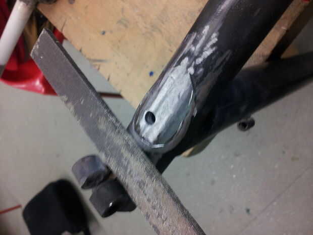 Este paso puede ser bastante lento. Yo debo han utilizado un removedor de pintura de tipo pero no creo de en el tiempo, tonto me. es importante que el marco tan brillante como sea posible para el mejor aspecto posible. He decidido tratar de acelerar las cosas con una lijadora de banda que funcionó muy bien, idealmente tendría como usar una chorreadora de arena pero no pudo. Después de usar la lijadora de correa había se deshizo de la mayoría de la pintura pero necesitaba conseguir difícilmente alcanzar lugares con papel de lija y archivos. Sobre todo me gusta cómo el metal tenía un efecto rayado. Después de haber eliminado toda la pintura que se puede le aconsejo utilizar una laca clara finlandés en el marco para evitar la oxidación en el futuro.