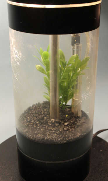 Esta lámpara de mesa incorpora un mini acuario de 1 galón que el deporte una bomba de aire, filtro de grava debajo, calentador y una luz fluorescente dedicado de 5 vatios para el tanque. La lámpara de sobremesa tiene un portalámpara de base mediana conmutada solo (un montón de palabras para una toma de luz 'normal') superior y un interruptor de inclinación que desenergiza todo debe suceder lo inimaginable y la lámpara de haz caída--sin agua y electricidad mezcla aquí!