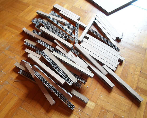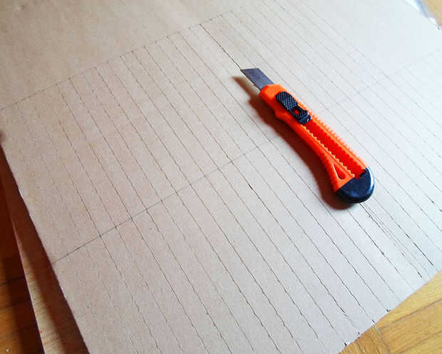 Dibujar 64 tiras en cartulina con un lápiz y una regla.