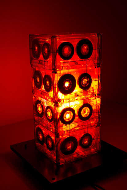 [[vídeo (http://http :// www.youtube.com/watch?v=bGrcujH5tx0, {ancho: 600, altura: 500})]] Reciclaje siempre todo lo que pueda.Esta lámpara está hecha de cintas de Cassette, y adapté un Joystick viejo como un interruptor.Un homenaje a las viejas cint