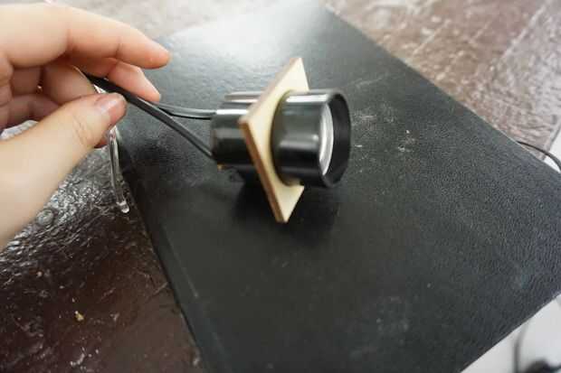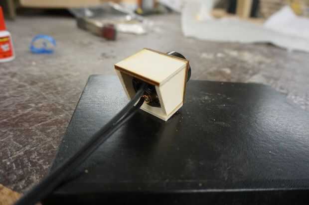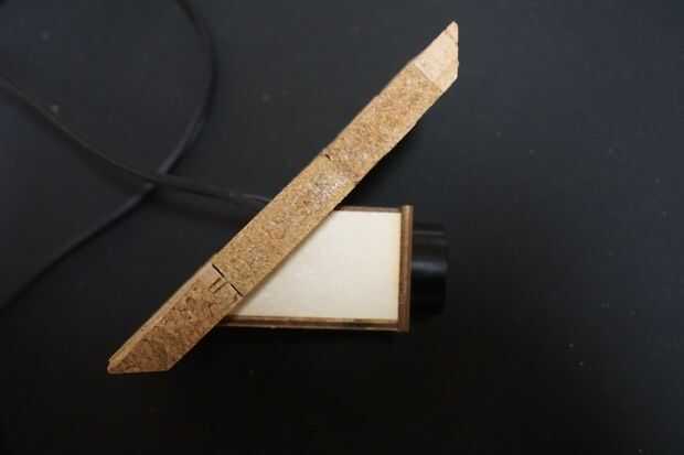 Utilice el cortador del laser para cortar un trozo de madera que se adapta bien a la toma y puede mantener todavía, corta algunos pedazos de madera y conectar a la pieza sostiene el zócalo. Uno de los dos trozos de madera rectangulares debe ser dos veces tan largo como el otro.