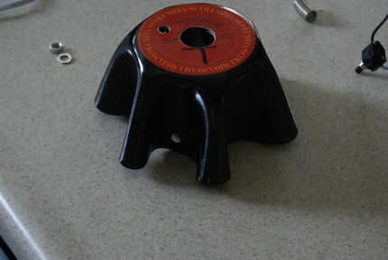 Utilizar la dremel para ampliar el agujero de centro, por lo que es lo suficientemente grande como para encajar la bombilla, pero todavía menor que la toma.
