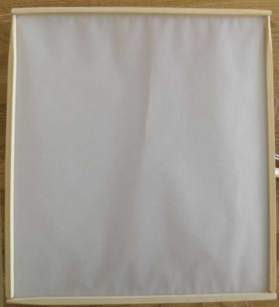 Luego aplica una capa muy fina de pegamento para madera a lo largo de un lado de los palillos y había pegado en el papel, alineando el borde exterior de los palillos con el borde exterior del papel. Puedes ver cómo puso hacia fuera en la foto. (Lo siento, que no pienso tomar fotos mientras hacía los paneles, pero creo que la foto de un lado de la pantalla completa da una buena idea). Pesar todo abajo con algunos libros o algo y dejar que el pegamento seque. Usted querrá hacer 4 de estos paneles. Si es necesario puede recortar el papel por corte a lo largo de la parte posterior del palillo con un cuchillo afilado y despegando el extra.