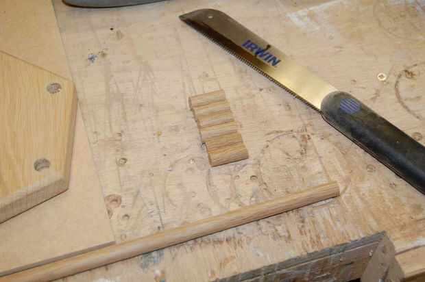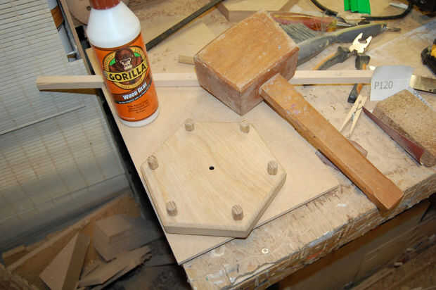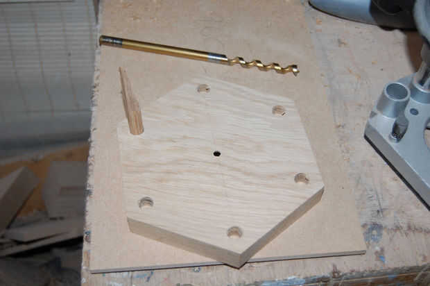Para acabar con la base había pegada en algunos pequeños trozos de espiga de 12mm como pies y había nivelada cuidadosamente hacia fuera por lijado hacia abajo.