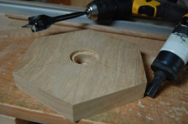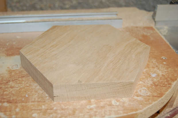 Hice un poco de base de un poco de roble, pero usted puede usar. Corté el roble en forma de hexágono con 95mm bordes largos en mi sierra de inglete.