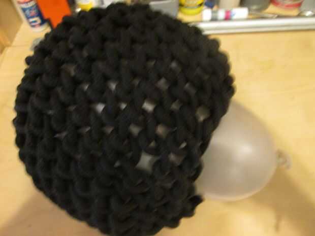 Para hacer la estructura más firme y más como una bola, poner un globo dentro de golpe hasta totalmente lleno. Diluir el pegamento de madera con un poco de agua (4 partes de pegamento-1 de agua) y "pintar" los lazos con varias capas de pegamento. Debe ser fijado por adsorción por el cable e invisible cuando está seca. Cuando se seca totalmente pop el balón. ¡ sí!