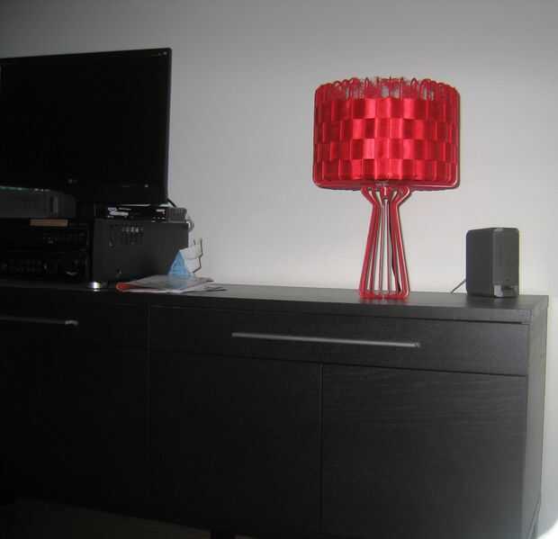 Una lámpara de mesa elegante con efecto sombra hermosa de rascar materiales. Yo lo llamo una lámpara de defensa porque la parte superior se asemeja a las defensas de tejidos utilizadas para evitar que naves de daños en el muelle. No sé si se utiliza