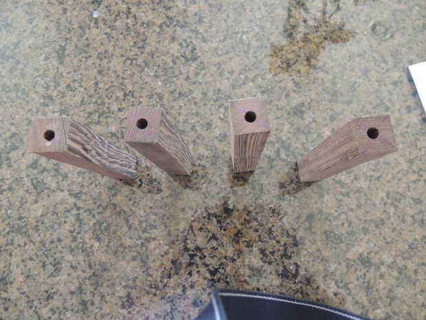 Perfore agujeros en el centro de las plazas en la base y en la parte inferior de las columnas usando la broca de 1/4 de pulgada. Todos los agujeros deben perforarse en 1/2 pulgada de profundidad.