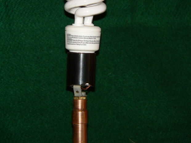 Para montar les inserte 1 pedazo de tubo roscado de 1/2" a 3/8 reductor con una tuerca de 1/2" lateral. La tuerca no deslizará a través de la 3/8" de apertura. Asegure con una tuerca de seguridad segunda. Conexión de la lámpara tiene una rosca hembra 1/8" por lo que se puede atornillar en el tubo.