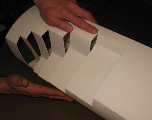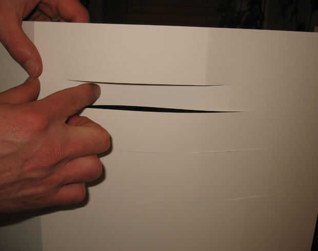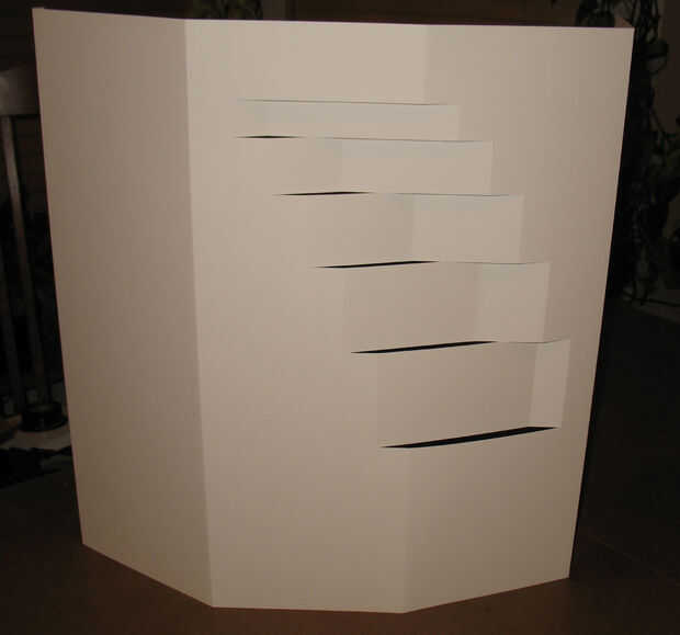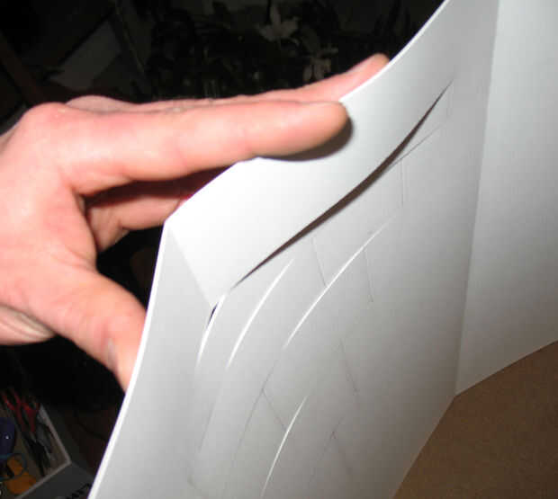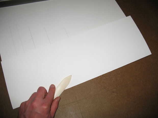 En este punto la sombra de pie vertical puede ayudar. Hacer uno en un tiempo de uso la herramienta sangría o sus dedos para empujar y presionar el papel en posición. Uno no todos a la vez; Para evitar arrugas no deseadas, rasgado o papel curvado tienes que hacer un poco cada uno hasta que se establezcan los pliegues.