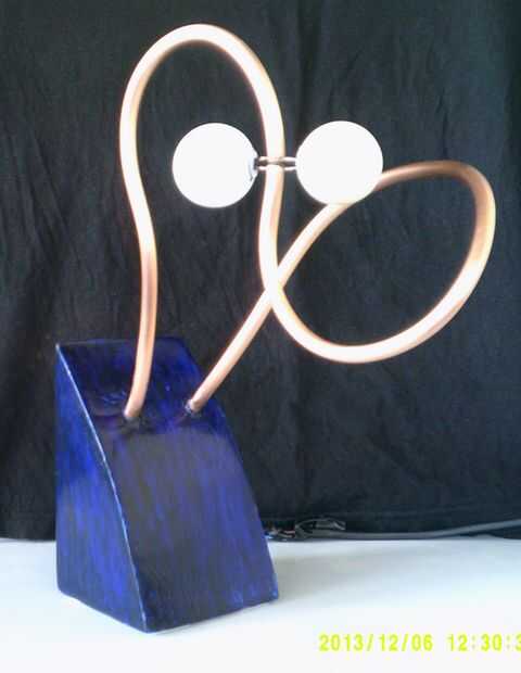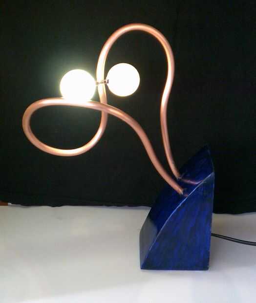 1) la corriente eléctrica corre por tuberías de cobre a la bombilla de Led donde hice 2) portalámparas. Ver las fotos.