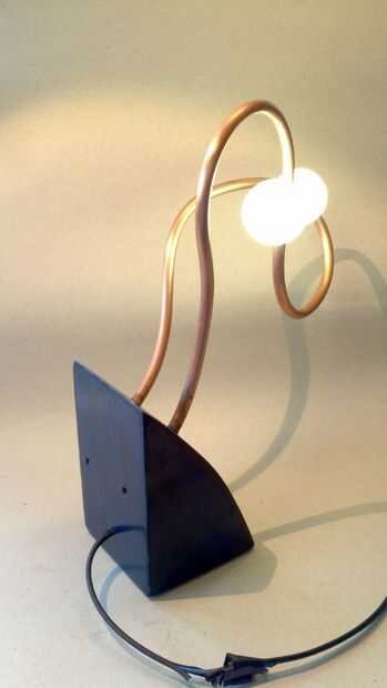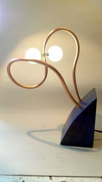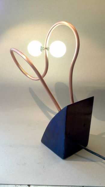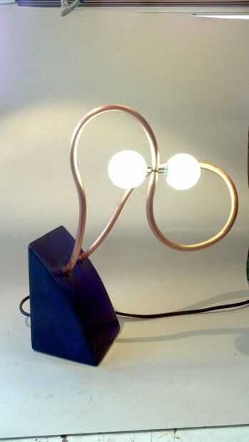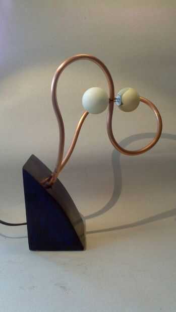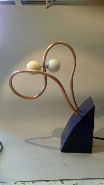 Lámpara de mesa de Ping Pong de tubo de cobre y madera recuperada sin cables (7 / 7 paso)