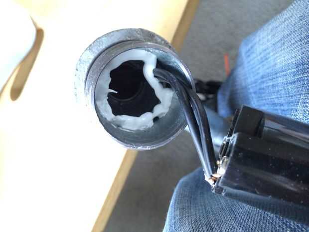 Una vez que esté montado el tubo, el extremo suelto del cable de alambre en el zócalo (Asegúrese de alambre el lado liso para el tornillo caliente) y luego fijar la rótula dentro de la tubería. Lo hice con más masilla, pero probablemente sería más seguro con algún pegamento o similar. Una vez que se seca, ¡ listo! Atornillar en una bombilla, enchufe en y el interruptor.