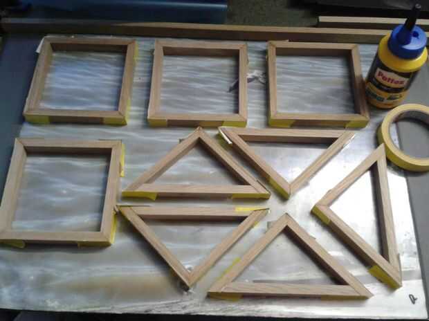 Conectar las tablas con pegamento de madera. Asegúrese de que tiene 4 cuadrados y 5 triángulos.