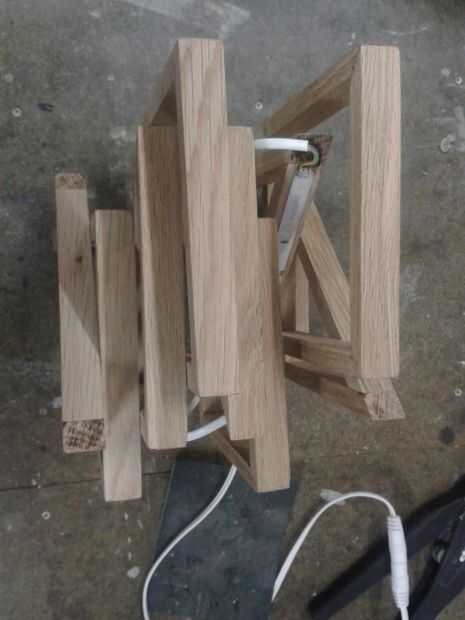 Una lámpara de mesa hexagonal hecha de pinzas!Este proyecto es super fácil, bajo costo, y las clavijas sombras algunos grandes. Hice algunos de éstos alrededor de Navidad como regalos, pero esto es lo hice mío.Usado-Pinzas de madera (50)Madera para l