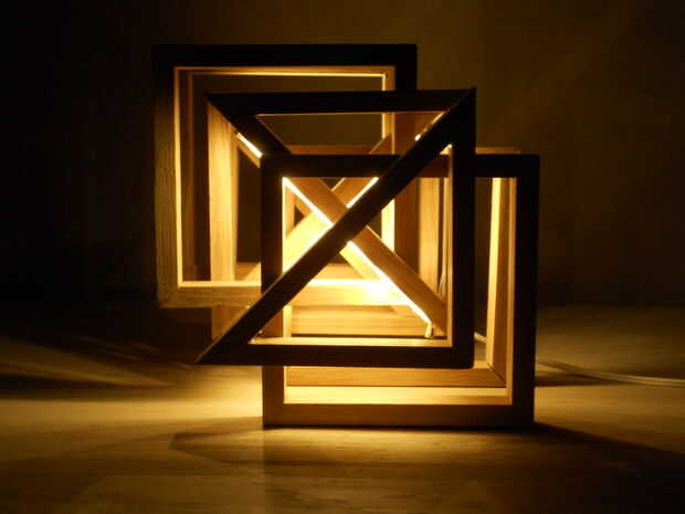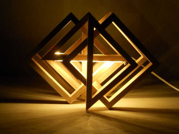 Hacer una lámpara de madera base en forma de un obelisco para una lámpara de mesa o mesita de noche.Materiales que necesitas son una tabla de madera gruesa de 3/4" 4 pulgadas de ancho por unos 40 pulgadas de largo; un pedazo de madera contrachapada d