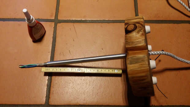 6. Fije el tubo en la base. Para mantener el suficiente espacio para el cable, el tubo roscado no debe sobresalir más de 3mm (= grosor de la tuerca M10x1).