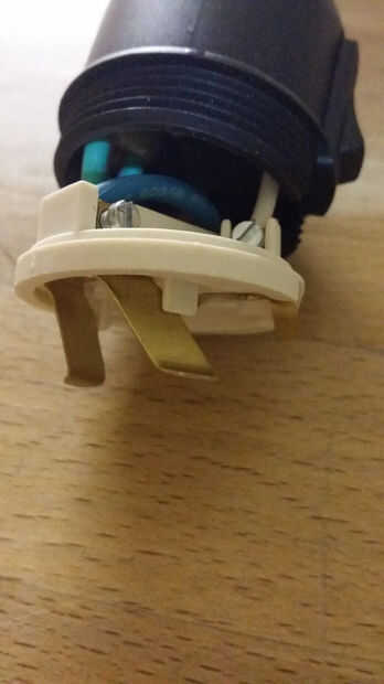 4. Conecte el enchufe con el interruptor on/off y montar. Comience con el cable de puesta a tierra (cable verde/amarillo). Si es necesario, adaptar la lavadora puesta a tierra según la toma y fíjelo con una tuerca de M10 en el tubo roscado. Conecte la fase al interruptor (cable marrón). Mente para conectar el interruptor (cable blanco) a la hoja de contacto en la parte inferior de la toma (it´s más seguros en no caso there´s bombilla en el zócalo). Conectar el neutro (cable azul) a la segunda hoja de contacto.