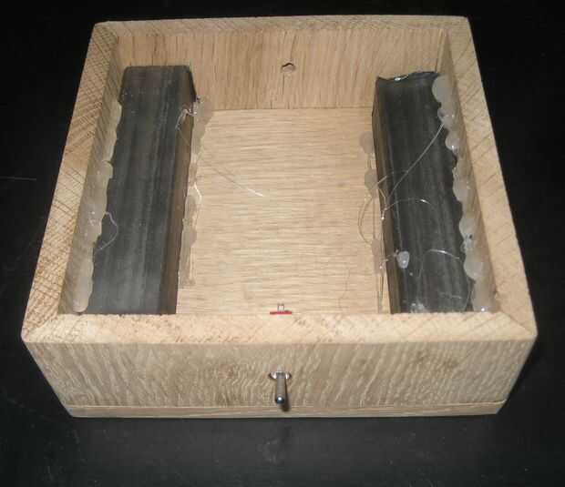 Para la estabilidad de la base pegué algunas barras de hierro dentro de la caja.