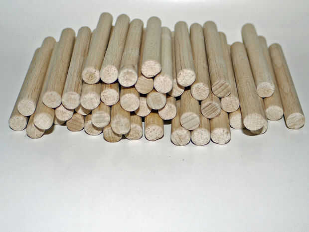 Comenzar cortando los palillos de madera redondeos en pedazos de 10 cm aproximadamente.