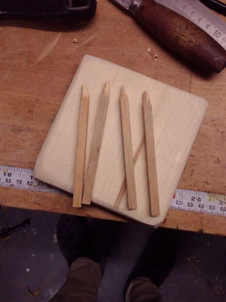 Ahora pega un palo en cada esquina, para sostener el tablero con la bombilla.